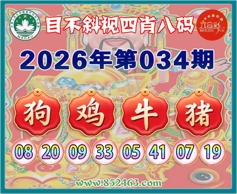 034期:《目不斜视》  ♣️四肖八码 ♣️【狗鸡牛】开:猪19