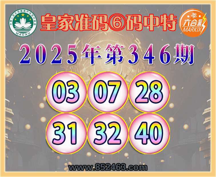 346期:【皇家准码】 🥉⑥码中特🥉【03.07.28.31.32.40】开:03准上榜高手