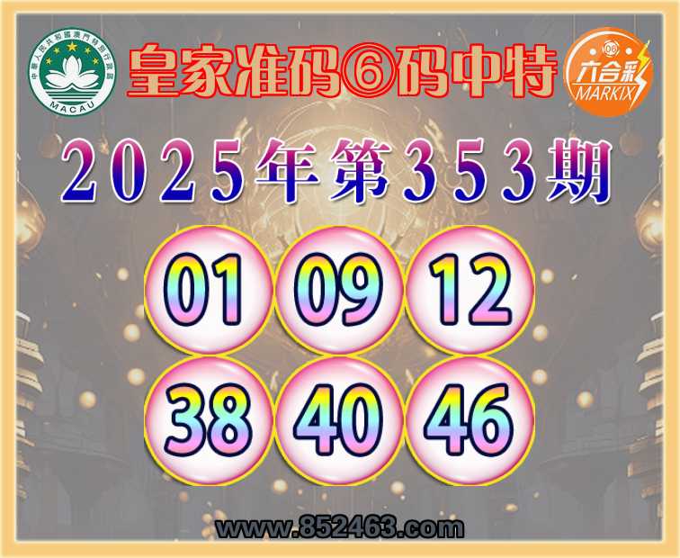 353期:【皇家准码】 🥉⑥码中特🥉【01.09.12.38.40.46】开:01准上榜高手