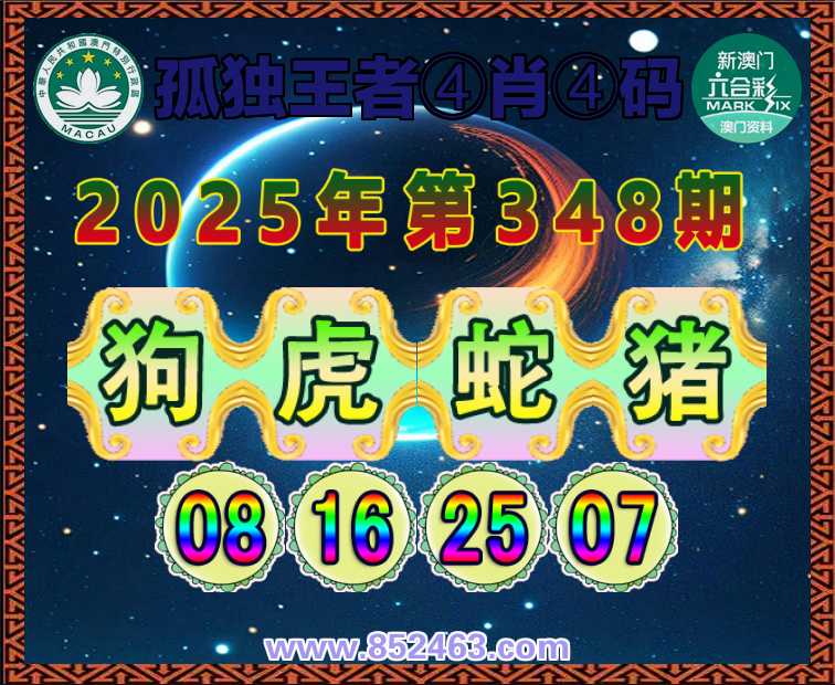 348期:【孤独王者】 🚡④肖④码🚡【狗蛇猪】【08.16.25.07】开:虎16