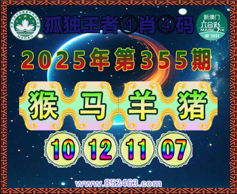 355期:【孤独王者】 🚡④肖④码🚡【猴马羊猪】【10.12.11.07】开:00准