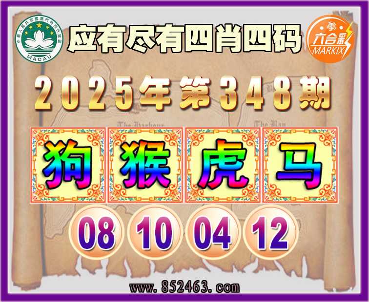 348期:🏅〖应有尽有〗🏅四肖四码🏅【狗猴马】【08.10.04.12】开:虎16