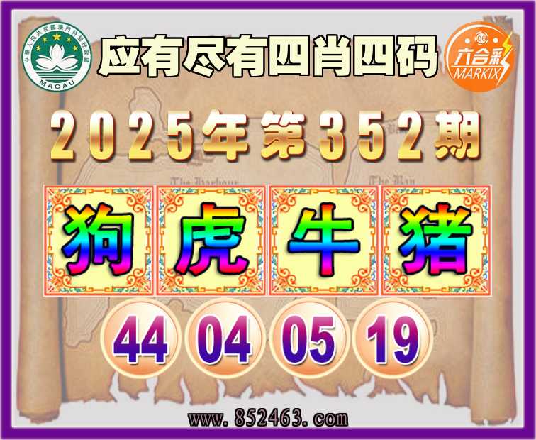 352期:🏅〖应有尽有〗🏅四肖四码🏅【虎牛猪】【44.04.05.19】开:狗44准上榜高手