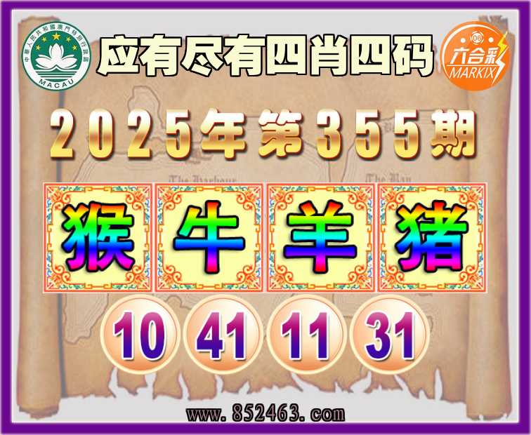 355期:🏅〖应有尽有〗🏅四肖四码🏅【猴牛羊猪】【10.41.11.31】开:00准